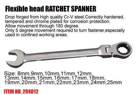 Flexible head RATCHET SPANNER